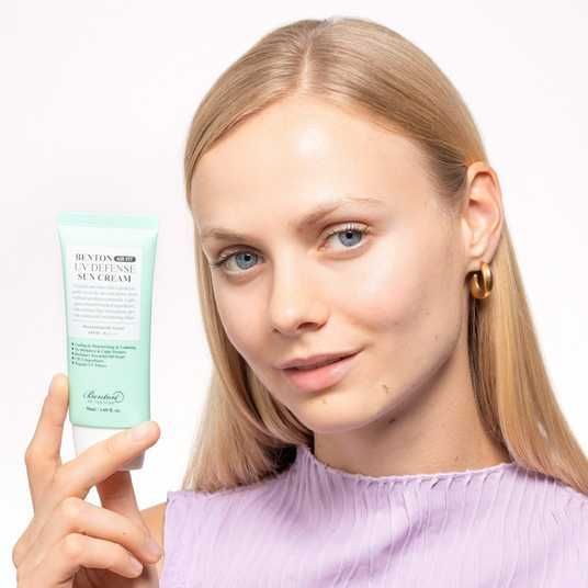 Die Benton Air Fit UV defense Sun Cream SPF 50+ PA++++ ist eine leichte chemische Sonnencreme, die sowohl vor UVA- als auch vor UVB-Strahlen schützt und sehr schnell einzieht, ohne sich klebrig anzufühlen. Der Sonnenschutz ist angereichert mit barriereverstärkenden Inhaltsstoffen wie Panthenol und Vitamin E. Der Sonnenschutz enthält außerdem Centella Asiatica für eine beruhigende Wirkung.