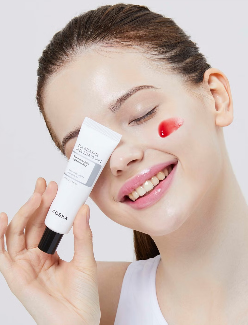- Glykolsäure - hat eine Peeling-Wirkung, wodurch Verfärbungen aufgehellt und die Zellerneuerung angeregt werden, wodurch die Kollagen- und Elastinproduktion verbessert wird, was die Festigkeit und den Feuchtigkeitsgehalt der Haut verbessert und zudem die Talgproduktion reduziert