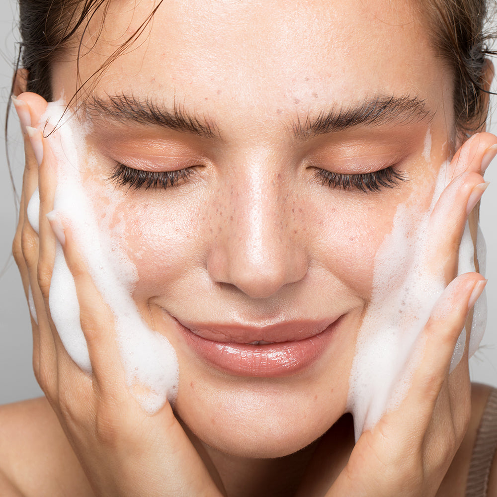 Sanfter hypoallergener Gesichtsreinigungsschaum für empfindliche Hauttypen.