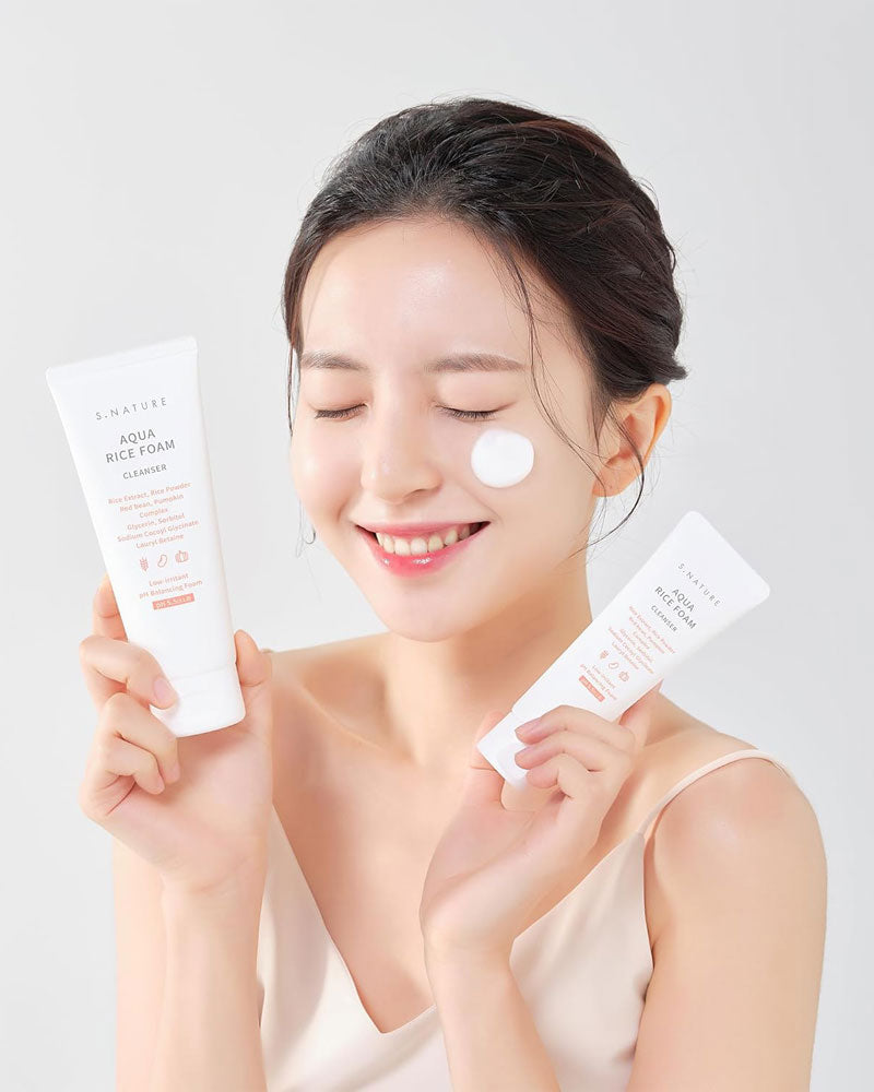 Erlebe das ultimative vegane Reinigungsritual mit dem S.NATURE Aqua Rice Foam Cleanser, inspiriert von jahrhundertealten koreanischen Schönheitstraditionen. Dieser sanfte und dennoch wirksame Schaumreiniger entfernt Schmutz, Sonnenschutzmittel und abgestorbene Hautzellen und erhält gleichzeitig das Öl-Wasser-Gleichgewicht deiner Haut mit einem leicht sauren pH-Wert.